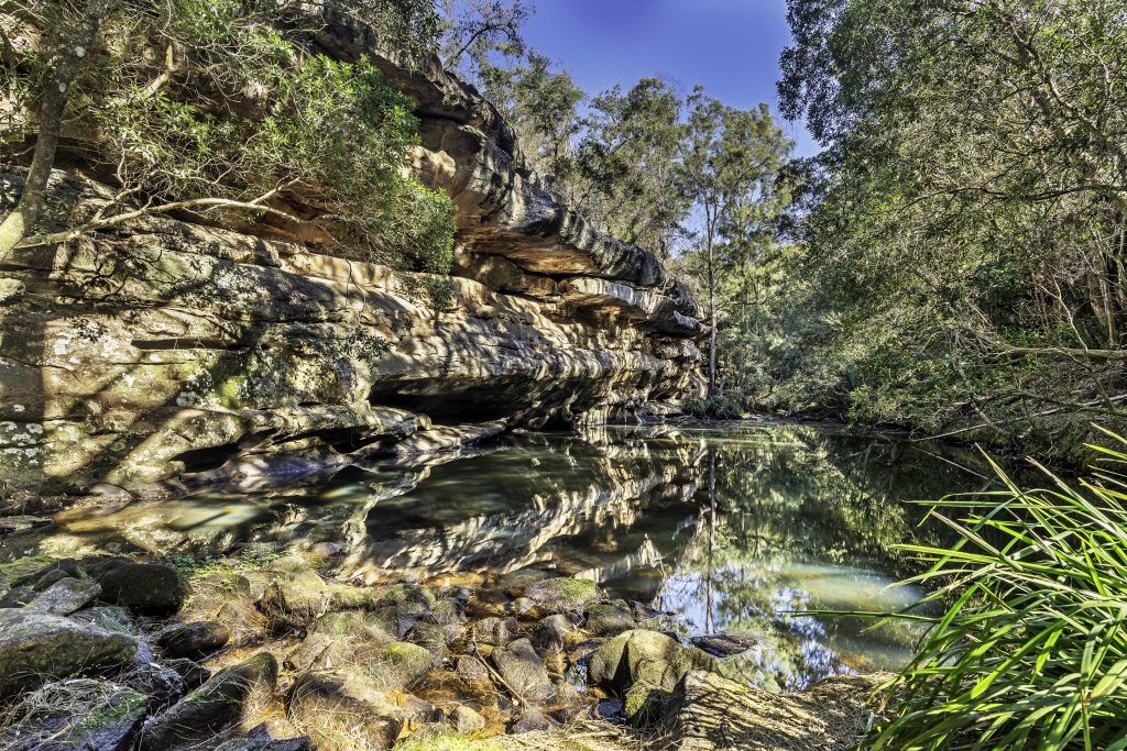 Tucked away behind the Princes Highway at Bomaderry an escape from the hustle and bustle of everyday life can be found. Cool forest, scattered boulders and soaring sandstone faces can be found just a short stroll from the tracks entrance. The track follows Bomaderry Creek which has carved a course through this impressive landscape filled with rock walls, overhangs and caves. Their are a variety of walks to choose from; A 5.5km return walk along the Eastern and Western tracks will take around 3 hours, A 1.4km return walk along the Western track to Rock Crossing, returning to the track head via Mossy Gully will take around 1 hour, or perhaps an even shorter stroll from the entrance to Bearnie’s lookout will still provide a grand vantage point.